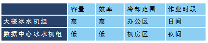 數據中心冰水機組日間關機,運用大樓高功率冰水主機。夜間數據中心冰水主機開機,為數據中心提供冷氣。數據中心空調系統與大樓空調系統智能同步,將節能作用發揮到極致。