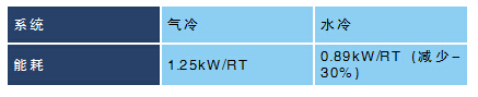 相較于傳統氣冷式空調系統,冷凍水式空調系統可節能三成,以 40RT(冷凍噸)的系統為例,能耗可從 1.25kW/RT 降到0.89kW/RT。