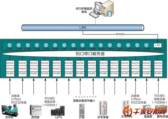 長(zhǎng)處:監(jiān)控內(nèi)容對(duì)比全部、布線簡(jiǎn)練、多串口服務(wù)器接入快捷。