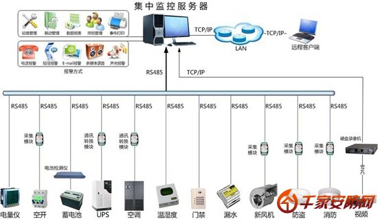 如下圖所示:各動(dòng)力設(shè)備智能通訊口(RS232/RS422/RS485)或許增加的收集模塊經(jīng)過(guò)工程布線引至工控機(jī)(運(yùn)行動(dòng)力監(jiān)控系統(tǒng)收集程序的電腦),由工控機(jī)完結(jié)協(xié)議解說(shuō)及數(shù)據(jù)處置。
